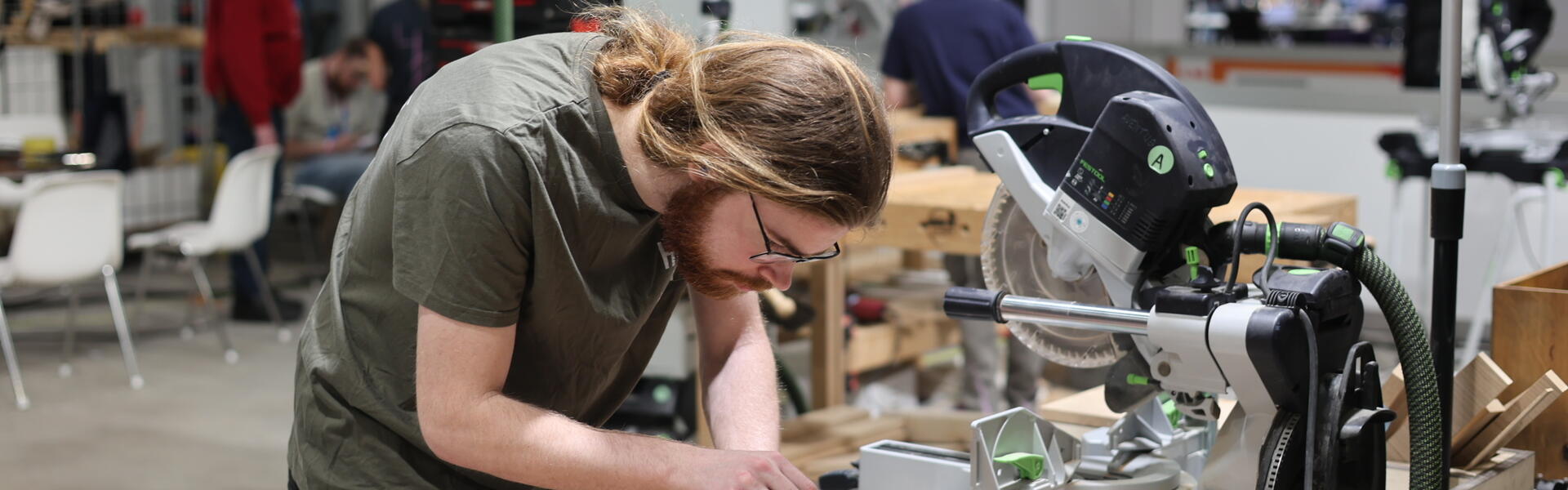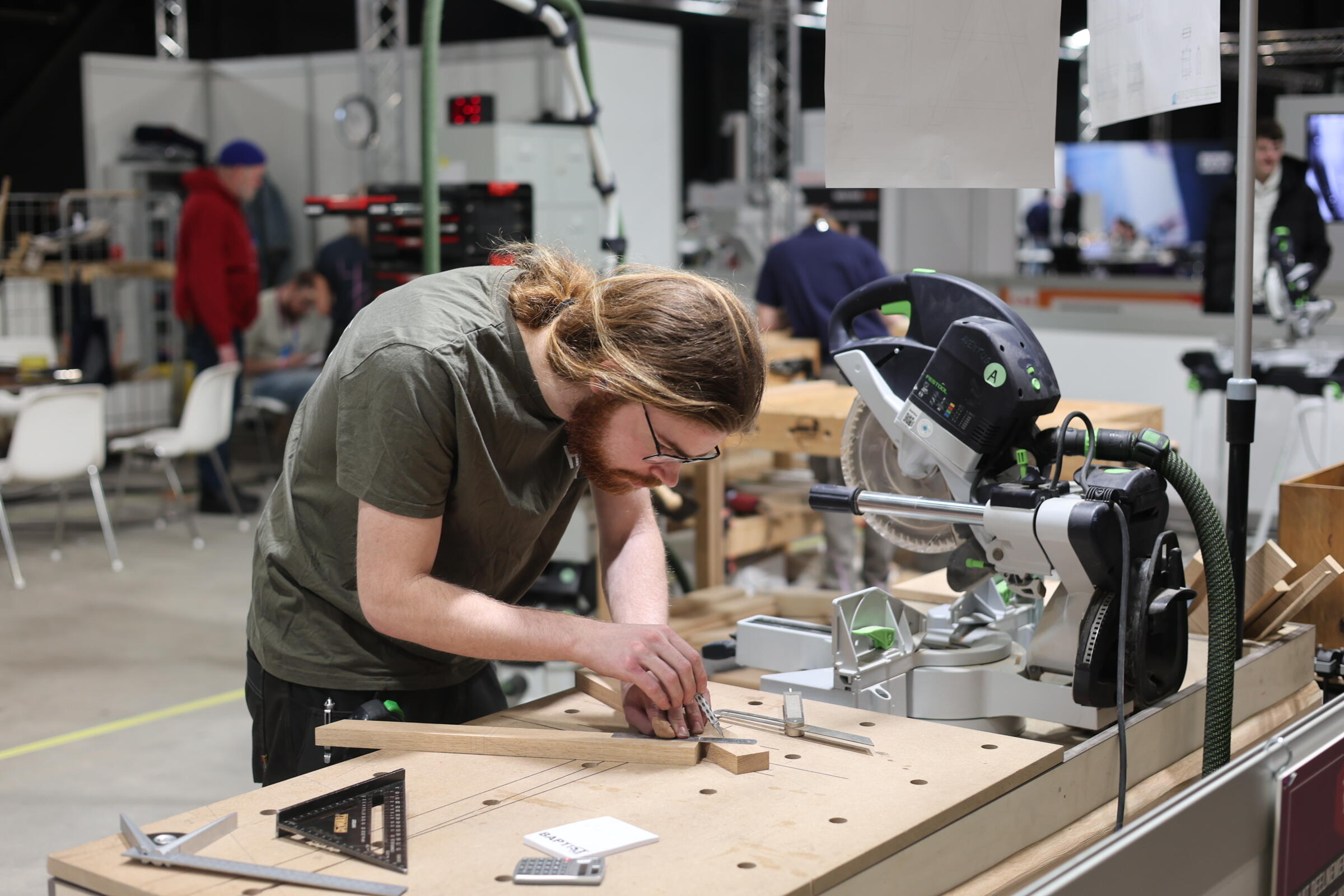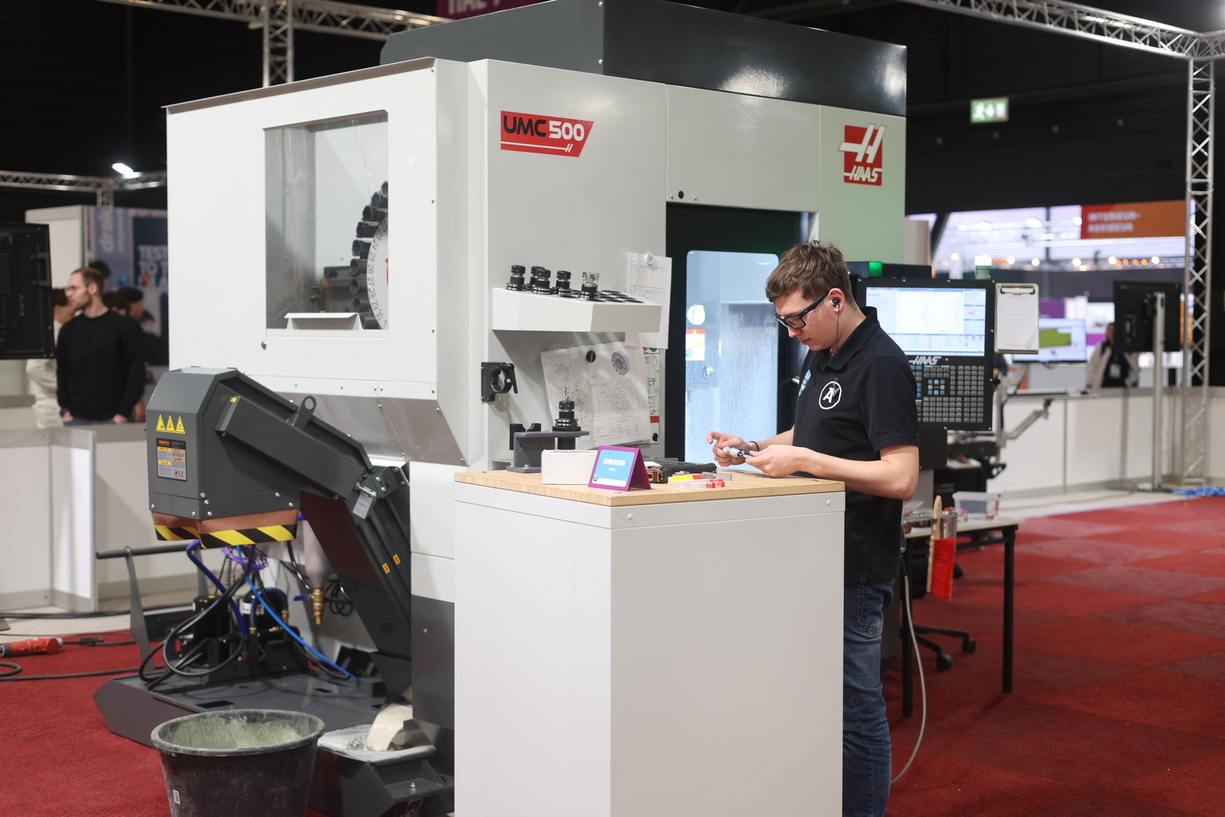 Devon, student CNC-frezer, werkt aan het maken van een klok terwijl het publiek toekijkt. Toch blijft hij nuchter: “Ik heb er zin in en ik zie wel hoe het gaat. Ik probeer er vooral van te genieten. Het is gaaf om in zo'n grote hal te werken met veel toeschouwers”. Zijn familie is ook aanwezig om vandaag en morgen Devon te supporten.
