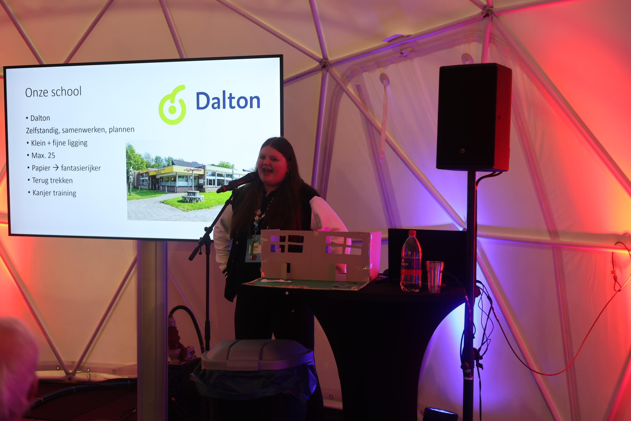 Een opdracht waarin creativiteit, samenwerking en inzicht samenkomen. Docent Lieke ziet hoe rustig Daniek haar werk doet: “Ik vind het heel knap hoe rustig ze blijft. Volgens mij doet ze het heel goed.”