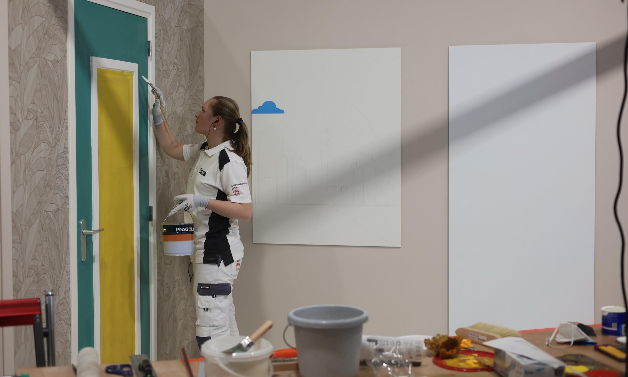 Voor Tessa, student Schilder, bestaat de wedstrijd uit vijf onderdelen. Van een hoofdopdracht en een black box tot het schilderen van een kozijn met deur in drie kleuren en het aanbrengen van een patroonlaag.